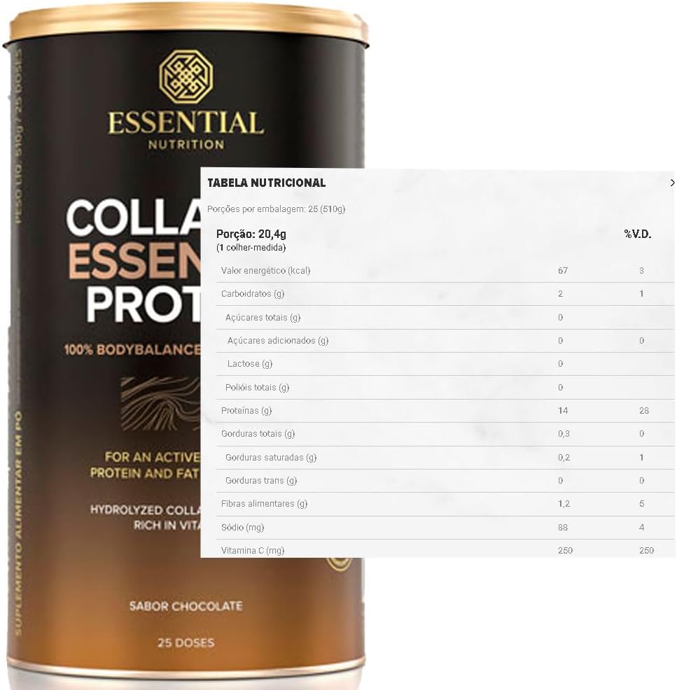 O Collagen Essential Protein Chocolate Trufado da Essential Nutrition é a escolha perfeita para quem busca uma nova e eficaz fonte de proteína, proporcionando resultados reais para uma vida mais ativa. Sua fórmula exclusiva é 100% composta por BODYBALANCE, um colágeno hidrolisado em peptídeos de alta qualidade, patenteado e em sinergia com vitamina C. Desfrute dessa proteína versátil e deliciosa, ideal para suplementar o colágeno de forma pura e biodisponível. Aproveite já!