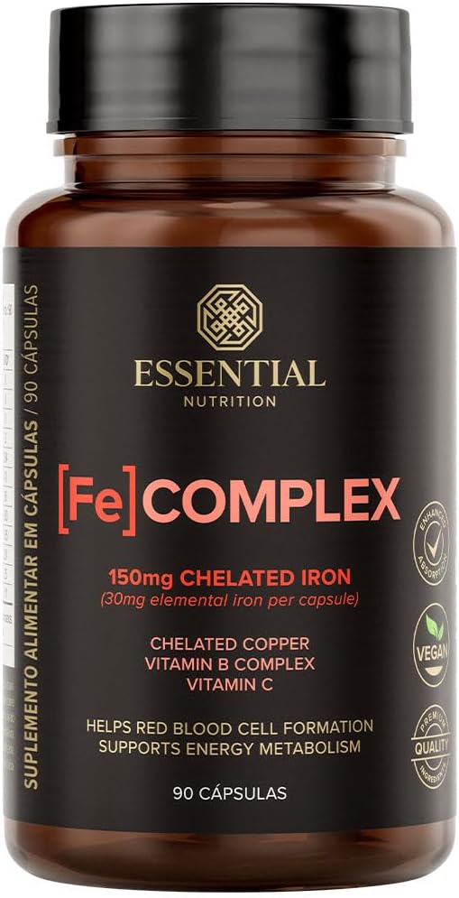 Essential Nutrition – [FE] Complex – Complexo de Ferro e Cobre Quelados + Vitamina C – 90 CápsulasEssential Nutrition – [FE] Complex – Complexo de Ferro e Cobre Quelados + Vitamina C – 90 Cápsulas