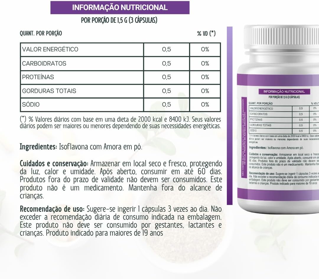 **Título do Produto:** Isoflavona com Amora 500mg 60 Cápsulas EuAtivo