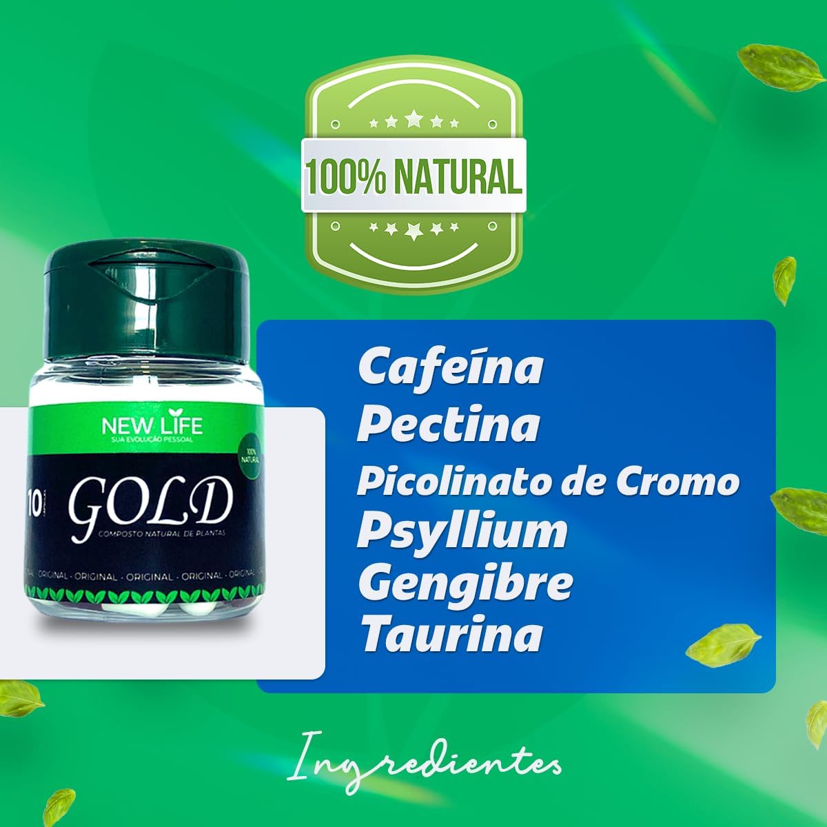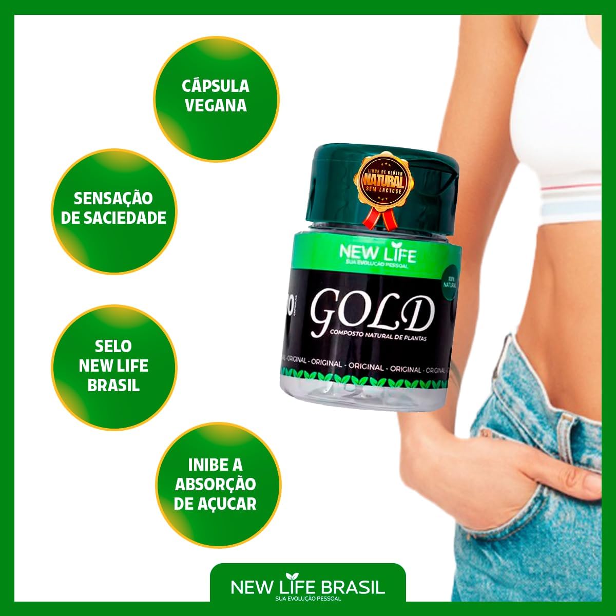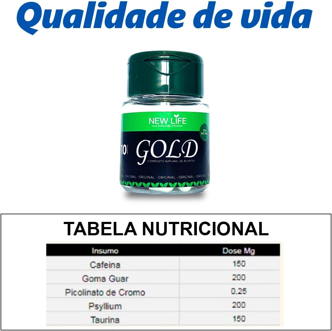 💊 Transforme sua rotina com New Life Gold, o suplemento alimentar vegano que oferece energia, regula o metabolismo e auxilia no controle do apetite. Com uma fórmula 100% natural, livre de glúten e repleta de benefícios para o seu bem-estar.